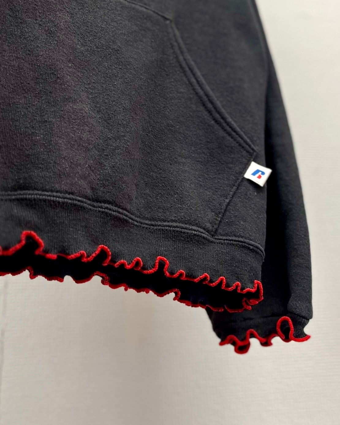 古着のスウェットフーディーをリメイクしてセーラーカラーのスウェットシャツをつくりました。