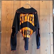 使用している古着には色褪せ等の中古感、よごれやダメージがある場合がございます。デザイン上あえてダメージのある古着を使用する場合もございます。デザインによってはサイズ感が左右非対称になる場合もございます。