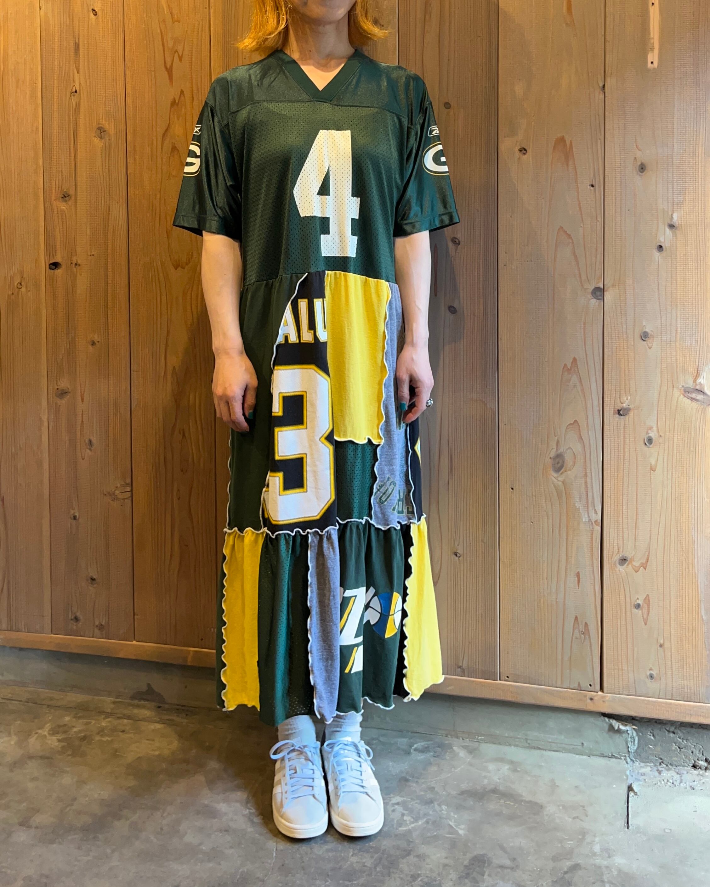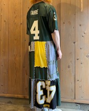 U.S.A.古着のゲームシャツとTシャツをリメイクしてマキシ丈のワンピースをつくりました。